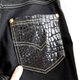 *全新意大利奢侈名牌VERSACE黑色仿鳄鱼皮纹牛仔长裤 PU胶覆膜印花**