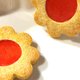 铺满砂糖的饼干表面, 配上甜甜的草莓果酱,