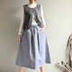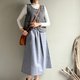 凯旋大道/纯棉单宁含毛料A字后开衩牛仔裙/松紧腰中长裙