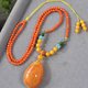 **〔 简介 〕:**天然俄料老蜡鸡油红水滴吊坠 妖孽纹理 饱满圆润。这纹理千年一遇 值得拥有 尺寸:43.29.19mm 净重:15.5克 重:28.7克 搭配重工 纯手工设计编织蜜蜡南红链子 大大漏不议价。 进店关注店铺送优惠券!