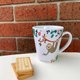 Elephant and sloth giving each other flowers and courage. Product Details • Printed NSW, Australia • Measured: 10cm height 9cm diameter • Boxed with foam protection • Microwave safe • Dishwasher safe