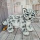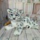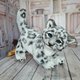 雪豹由人造毛皮缝制而成,塞满了合成填充物。 用于称量添加的玻璃颗粒。塑料骨架从头部安装到尾部的尖端,以及爪子中。 由于骨骼,豹可以采取各种自然姿势。 豹子涂有艺术颜料. 鼻子和爪子垫由聚合物粘土制成。 眼睛是一个丰富的蓝色。