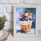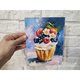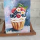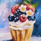 一幅带有美味纸杯蛋糕的微型画是用油画颜料在 20/15 厘米格式的硬纸板上绘制的。一幅带有甜点的画将装饰您的厨房,并且可以成为您自己和您所爱的人的绝佳礼物。一幅食物的小画是用厚涂技术和大量、有纹理的笔画绘制的。不包括框架。