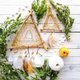 - This is a set of 2 tepee dreamcatchers. Yellow, white and brown feathers, wooden beads and cotton threads create a beautiful natural design that will go well with any interior. Use it to decorate a nursery, a bedroom or your favorite space in the house :)