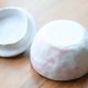 手工捏制,内部盛满粉红色,视觉宛如梦境,是一件收藏与使用兼具的作品。内部施粉红流釉并带雾白釉自然流动。