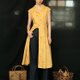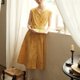 领子是弧形的圆润自然,姜黄色很显白,肩膀处有一点点弧度 更加优雅,配一根宽腰带,可以增加穿搭的可能性,同色系扣子可以全部打开,下面也可以搭配裤子,偏长的长度,更加具有vintage感。