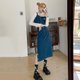 - 全棉制的牛仔面料柔软亲肤,这是套装中的吊带背心,双吊带结构与侧门襟设计让它更富有特色~