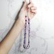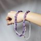 严选紫水晶钻面珠饰、四叶幸运草珠饰、紫龙晶扁珠,相佐玉化程度高之梅花碧玺,双股链身交织富贵之美,宝石水光透润、色彩优雅,以高洁清净之白玉链身,衬托主体紫色系名贵宝石智慧富贵、婉约柔美之风情。