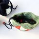 圆底座直径9cm,开口躺平14cm,全高12cm,束口绳以下9cm,100%纯棉线手工制作。