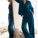 沿用质感的缎面布料,让孔雀蓝变得更加高雅。