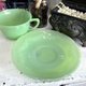 **FIRE KING Jadeite Glasses Tea Cup 翡翠半透玻璃茶杯**