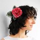 Flower hair comb with handmade red snowy Rose. Floral hair accessories for women. Rose for Christmas present girl or decorate bride's hair at a winter wedding.