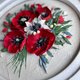 立体花艺 红色罂粟花与白蓝野花 手工雕塑画 圆形木框艺术品