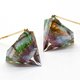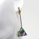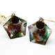 Pentagon-shaped dangle earrings with a dome-shaped hollowed out Pentagon-shaped earrings with green and white colors, polarized powder, and brion enclosed in crystal resin.