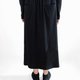 便有自然的垂坠线条,裙子两侧的扣子往前扣上如窄裙,解开扣子