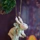- This Bunny is a one-of-a-kind spun cotton christmas decoration. He is about 3 1/2" (9 cm) tall. This bunny is created in the ancient technique. The toy is light and not soft to touch. Christmas tree decorated with cotton toys looks so weird and so cozy! For a home collection of Christmas tree decorations or as an original gift for any!