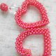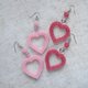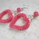 串珠心形耳环, 粉红色耳环, 心形耳环, 粉红色心形, 手工耳环