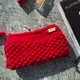- This cosmetic bag, knitted from red T-shirt yarn, is decorated with a small tassel and a wooden tag. Small zippered pouch can store your phone, cash, credit cards, keys, cosmetics, stationery or other small items. Use it as a make-up bag, purse or small clutch.