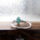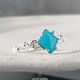 将澄澈的蓝铜矿玉髓 / 宝石石英,镶嵌于纤细的唐草纹戒指上。