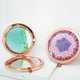 以鲜艳的干花和幼线拼成网圈,加上宝石形玻璃片的点缀,精致的捕梦网镜盒便完成了。