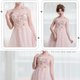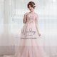 豆沙粉花卉礼服,活动领抠可以拆掉作多种造型