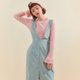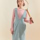 Soft corduroy fabric wide straps dress in mint colour. It features with both side pocket. Comfortable wearing with front skirt cut and back elastic waist.