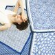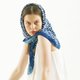 Silk satin scarf inspired by pineapple pattern. Popular patterns paint on Thai porcelain. “Blue and white porcelain” Blue and white pottery cover a wide range of white pottery and porcelain decorated under the glaze with a blue pigment. In the past it was a Chinese container. China imported to sell in Thailand. After that, Thailand made its own porcelain, created new patterns and sold them to neighboring countries. The most popular pattern is called "pineapple pattern". Because it looks like a pineapple pattern that inspired INTHAI picking this pattern. Draw and print on the fabric for souvenir of Thailand