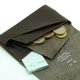 收纳零钱的部分设计成可以简单地开合的结构。没有钮扣或是拉链的设计,也许会令人感觉有点不安...其实只要把外盖包好,零钱就绝对不会掉出来!