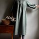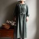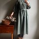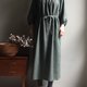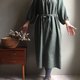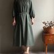 风信子/远山绿 棉麻圆领抽皱泡泡袖洋装