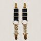 - Pair of adjustable garter clips with wide elastic band and golden hardware and chains. These suspender clips are designed to be worn with stockings, high socks or garters for a sexy luxurious look.