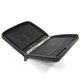 这款 A5 尺寸的系统手帐收纳夹,附有提把。原创的六孔活页夹内径 25mm,可容纳大量补充内页。内部设有卡片夹、名片夹、记事夹、文件夹及其他收纳口袋,并附有笔套,方便有效率地整理收纳。圆形拉链设计,背面有伸缩式提把,可像手拿包一样携带。您可以选择从上方悬挂提把携带,或将手掌伸入提把下方,从底部向上握持,以您喜爱的方式随意携带,推荐给希望俐落完成商务事务的您。同时,也可作为小型平板电脑保护套使用。材质方面,内外皆奢华使用来自意大利圣塔克罗切地区皮革厂 Athena 的植鞣革 (缩纹革):INGRASATO。