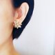 花朵是利用つまみ細工的技法,将米色和白色布料组合制作而成。