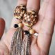材质:轻质黏土 (树脂黏土) 玻璃珠 绣线 黄铜 镀金耳夹