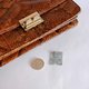 这款蛇皮手提袋设计高贵典雅,展现法式复古魅力。深啡色蛇皮纹理细腻,手感极佳,金属锁扣设计独特,需同时向内按压左右两侧才能打开,增添安全性与精致感。