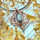 将黑太阳石以红铜线编织成金色的叶片,阳光下彩虹光泽闪动,传递着秋日的温暖和浪漫,为萧瑟的秋天带来一丝暖意。