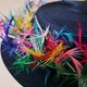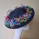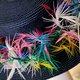 *帽身装饰色彩缤纷的手工塑形羽毛