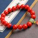 我们坚持传统工艺打磨,拒绝上胶上色上蜡,大部分商家采用机器打磨,珠子做胶处理,这种珠子越戴越难看,破坏了朱砂的天然灵性,甚至对人体有害,我们不惜人工成本,用砂纸一遍一遍重复打磨,直到珠子呈现出天然的油光亮泽。