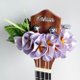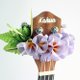 ★ 颜色和材质:浅紫色和黄色丝带花,搭配鲜绿色人造叶子。