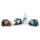 拥抱先进交通科技!含三辆电动智能车及充电站。每辆车都有一个小孔,可以插在充电站上。