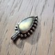 延续先前特选主石的经典包框系列,这次用比较小一点的主石做了银珠围绕的装饰,其实边框也有锻敲上斑驳的质地但加上大银珠之后表现的空间就变得小了一点点。这颗拉长是体比较透光感也清澈的类型,在纯然的金色彩光周围纪录了行星的轨迹,正好是新一年第一件介绍的作品,希望能成为向着光明运转的力量。