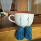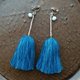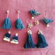 Handmade earrings using dark and light indigo threads and Juzudama from the village.
