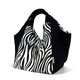 斑馬紋手提便當袋,也可做普通手提袋使用。純棉帆布材質,銀色格子紋裡襯,袋口磁吸扣設計,方便開合,美觀兼實用。