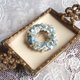 The coloring is cool blue and white. An eye-catching gorgeous accessory that looks like a blue hydrangea on your chest.