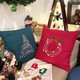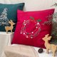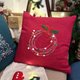 手工刺绣红亚麻圣诞抱枕套 – Sashiko 花圈设计