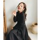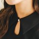 - 可爱感的娃娃翻领,精致的珍珠扣可以解开水滴形镂空,让穿脱更方便,也更精致复古 腰部处是可调节扣袢腰带后腰有纽扣可固定,很引人注目收腰带形成两侧褶皱,显细小A型的裙型修饰下半身,更显瘦