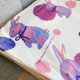 以彩色涂鸦为主要画风, 紫色点点配上可爱的兔子