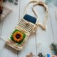 钩编手机袋带有可爱的色调。肩膀横过身体使携带手机更加方便。还可以放入各种卡片。