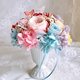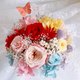 - 以淡粉双色庭园永生玫瑰为主.周围点缀了缤纷色调的绣球花让整体更显活泼优雅花礼 适合各种赠礼用途唷!