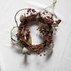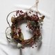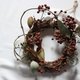 以自然干燥的素材缠绕编织在藤圈上,使用山归来与复古色尤加利叶为主要素材,运用山归来的特性,以缠绕方式呈现线条感,让花圈更显独特与生动。