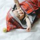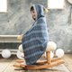 连帽浴巾采用柔软纱布和绒毛面料,纱布部分采用四色格纹图案设计,绒毛部分则是别致的灰色